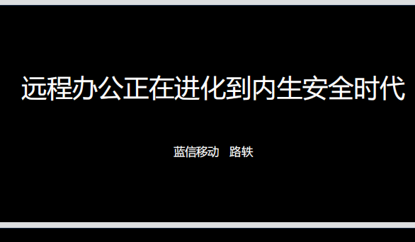 远程办公 - 效率与风险并存:移动业务的边界从办公室扩散到泛化网络的任意人员、任意时间、任意地点,安全风险同样呈现新的特征; 远程办公正在进化到内生安全时代:传统的安全防护手段局限在内外边界;远程办公面临的威胁要求安全能力构建在业务系统上,从而保证系统能生长出内生安全能力