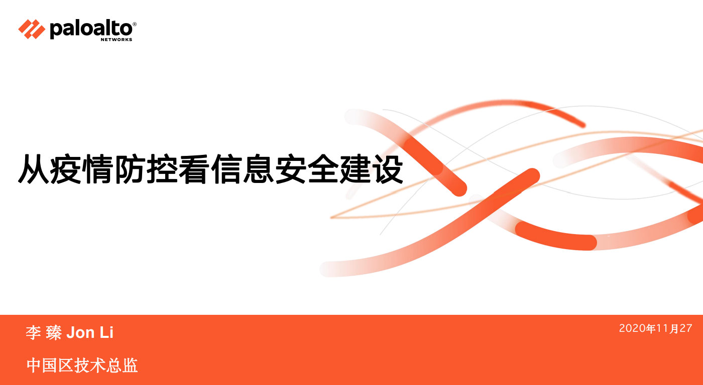 ● 疫情防护之应检尽检查与信息安全的零信任理念 ● 防疫情扩散封城与网络安全加固(安全的加减法) ● 从疫情防控看信息安全 - 零号病人、病毒扩散和变异 ● 从疫情防控看信息安全 - 医疗系统瘫痪与安全能力平行扩展 ● 疫情扩散封城 vs 无边界的网络 - 云原生安全 ● 疫情防控的新常态与信息安全的持续监控
