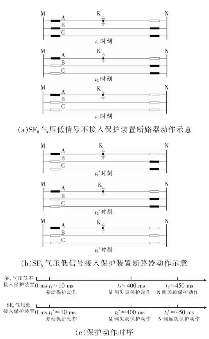对于220 kV及以下电压等级的线路,其重合闸功能一般集成在线路保护装置中[3]。330 kV及以上电压等级的线路,其重合闸功能集成在各断路器保护中。各电压等级集成重合闸功能的保护装置均需考虑与本间隔断路器控制回路配合来实现闭锁重合闸。目前,保护装置中“低气压闭锁重合闸”回路主要由断路器本体相关继电器的辅助接点(如SF6气压低、弹簧未储能、断路器油压低闭锁重合闸)直接接入到线路保护或断路器保护装置“低气压闭锁重合闸”开关量输入端子来实现。
