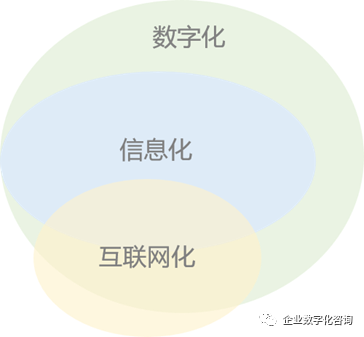 关于信息化、数字化与互联网化三者的关系我们通过下图可以看出一些端倪:很显然数字化包容了信息化,但不完全包容互联网化。信息化属于数字化的子集,实现了信息化,只能说是完成了数字化的一部分工作,比如信息化过程中很可能只是通过信息化系统将一部分业务实现了数字化。但是如果说一家企业较好的实现了数字化,那么则必然实现了信息化,因为全面的信息系统是企业数字化的前提,实现企业数字化的重要手段之一肯定是信息化系统。