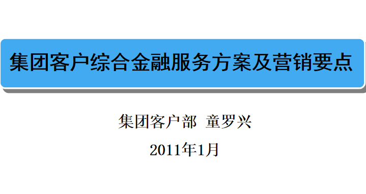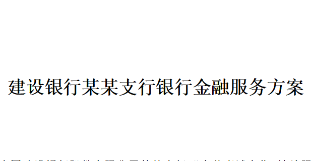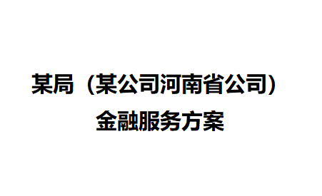 本方案是中国工商银行在全面深入理XXX盛集团基于结算、融资、投资理财等金融服务需求的基础上,为贵公司专属设计的金融服务方案,衷心希望本方案能够掀开我行与贵公司合作的新篇章,实现银企共赢