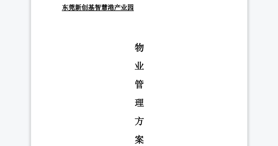 依据新创基物业现阶段对项目的了解,针对【新创基智慧港产业园】项目定位于高新科技产业园区和高端商务办公区的特性,对物业管理综合素质有很高的要求。结合本人的物业管理经验,新创基物业对【新创基智慧港产业园】物业管理服务工作,