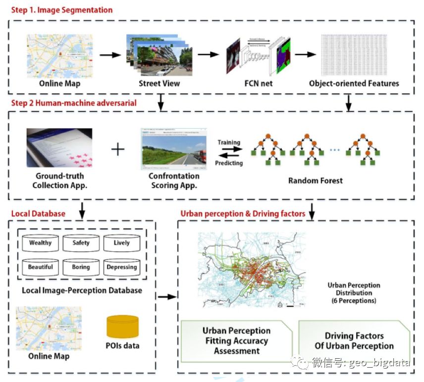 近些年随着大量带有地理标签的图片数据集的出现,由于其包含着丰富的可视信息,可以准确刻画城市的视觉环境。此外人类大脑和视觉也是城市居民获取对周边环境感知最为直接和有效的方式,在对自然场景的全局性理解和识别方面具有本质的优越性,因此城市街景可以更好的辅助我们对城市感知的定量分析和定性理解。