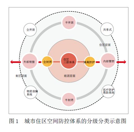 城市住区是城市运行的基本单元,也是应对突发公共卫生事件应急管理的第一线;开放是住区的常态,可促进人流、物流、信息流的流通,提高整个社会的活力;封闭是住区的非常态,可降低危险因素的扩散与传播。住区空间防控体系的构建是在开放与封闭之间寻求一种平衡,在服务职能与防控角色之间进行快速转换。