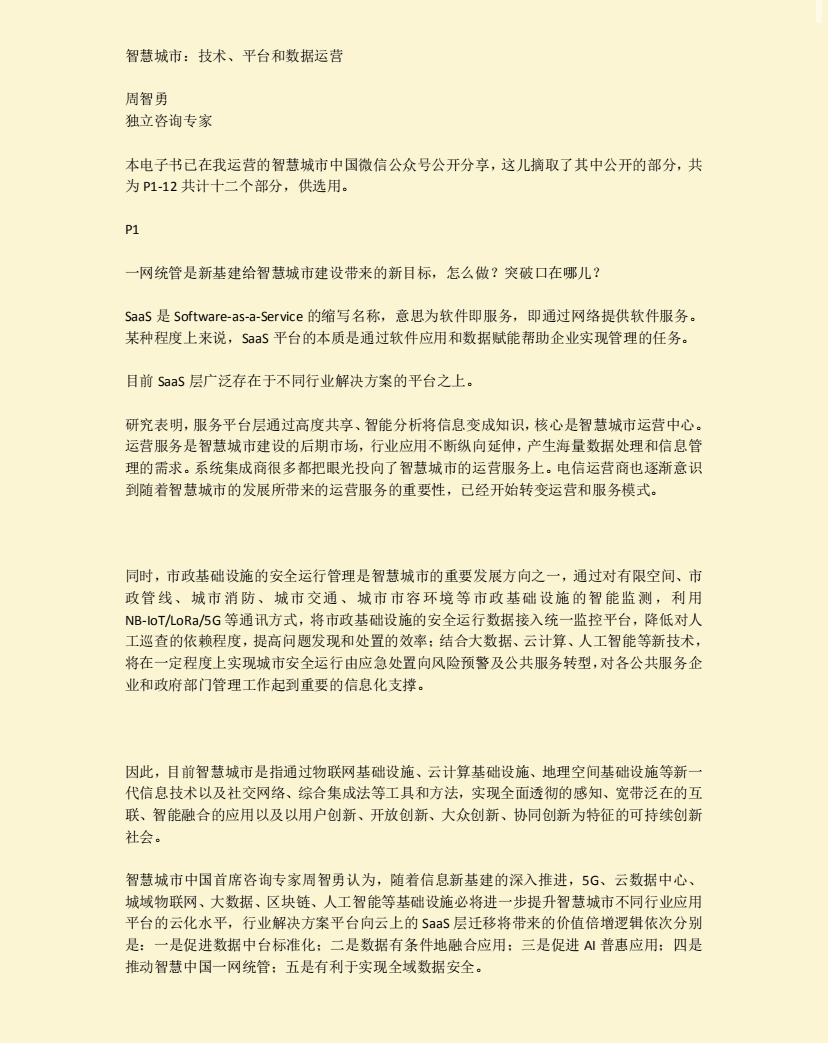 基础。当前智慧城市试点主要集中在各领域应用的智慧城市建设上,缺乏统一的顶层设计规范,导致智慧城市顶层