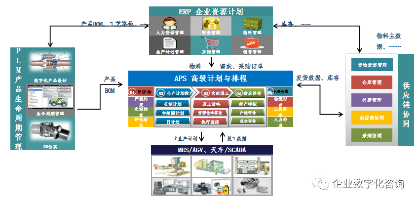 十三五建设期间重点以PDM、MES与ERP等企业信息化建设的三驾马车为主,其余的都属于修修补补用三年的情况。大概可以分为产品数据管理(PDM)、工艺管理(CAPP)、企业资源管理(ERP)、制造执行过程管理(MES)、车间数据采集(MDC)、协同办公(OA)等等,甚者部分已经实现了主数据管理、ESB等业务应用之上的数据标准管理、系统集成系统。大体属于以应用为主、数据为辅的状态,实施的思路也集中在将纸质单据数据搬到系统之上,大部分数据还是以人工录入为主。