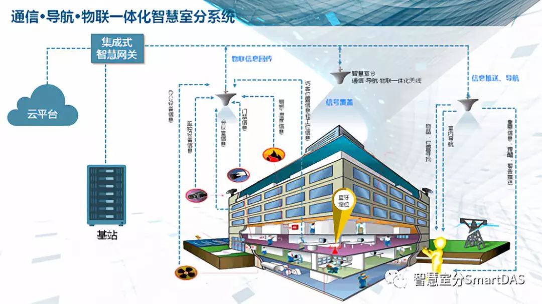 随着信息化和智能化技术的发展,现代化楼宇采用了大量具备物联、传感等功能的智能硬件、如智能空气净化器、智能空调、智能门禁等。但这些孤立智能硬件使智慧楼宇的运行还仅停留在系统整合、自动化、安全管理等方面,并不能完全满足楼宇智能化的未来需求。智慧室分系统以室内通信网络为基础,完美地结合了室内蓝牙定位技术(iBeacon)和物联信息收集技术(蓝牙或WiFi),充分利用了楼宇内智能硬件提供的各种数据,使楼宇的建设、管理和应用更加智能化。