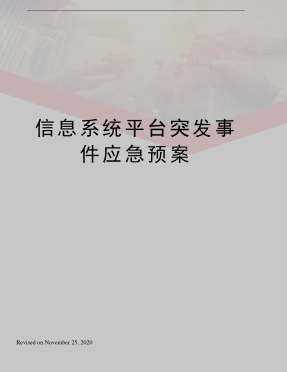 公司网络和信息安全涉及以设备为中心的信息安全,技术涵盖网络系统、计算机操作系统、数据库管理系统和应用软件系统;涉及计算机病毒的防范、入侵的监控;涉及以用户(包括内部员工和外部相关机构人员)为中心的安全管理,包括用户的身份管理、身份认证、授权、审计等;涉及信息传输的机密性、完整性、不可抵赖性等等。为切实加强我司网络运行安全与信息安全的防范,做好应对网络与信息安全突发公共事件的应急处理工作,进- - -步提高预防和控制网络和信息安全突发事件的能力和水平,昀大限度地减轻或消除网络与信息安全突发事件的危害和影响,确保网络运行安全与信息安全,结合公司工作实际,特制定本应急预案。