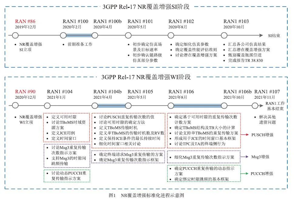 为提升5G NR网络的覆盖性能,研究并讨论覆盖瓶颈信道的相关覆盖增强方案,包括物理上行共享信道的重复传输增强、多时隙传输块处理、联合信道估计方案,物理上行控制信道的动态重复传输指示、解调参考信号绑定方案,以及随机接入中的Msg3信道的重复传输方案。基于上述增强方案,聚焦3GPP Release 17 NR覆盖增强的标准化工作,介绍并分析了相关覆盖增强方案的标准化进展。最后分析了3GPP Release 18覆盖增强标准化工作的必要性,并对相关标准化方向进行了展望。
