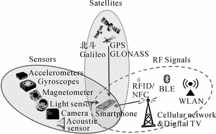 室内定位是未来人工智能的核心技术之一,对即将到来的人工智能时代起着举足轻重的作用。开发有效的室内定位新技术是工业界和学术界的研究热点,如谷歌研发的室内视觉定位服务技术、苹果致力推动的基于低功耗蓝牙的iBeacon室内定位技术以及百度携手芬兰IndoorAtlas公司推出的基于磁场匹配的室内定位方案等。然而,受室内复杂环境以及空间布局、拓扑易变等影响,实现准确、可靠、实时的室内定位,满足各类定位需求仍有很大的挑战性。目前,随着智能手机的普及和微机电系统技术的发展,智能手机内置多种传感器和支持丰富的射频信号,可提供不同的定位源。本文从智能手机的内置传感器和射频信号两个方面,综述了现有基于智能手机的室内定位技术,指出各种定位技术的优缺点和应用场景,分析室内定位的发展现状和存在难点,对室内定位技术未来的发展方向进行了展望。
