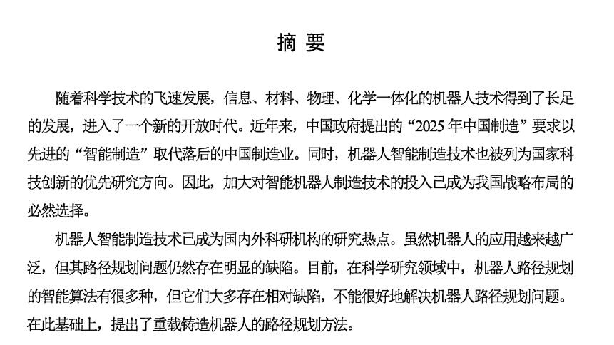 随着科学技术的飞速发展,信息、材料、物理、化学一体化的柳器人技术得到了长足的发展,进入了一个新的开放时代。近年来,中国政府提出的“2025年中国制造"要求以先进的“智能制造”取代落后的中国制造业。同时,机器人智能制造技术也被列为国家科技创新的优先研究方向。因此,加大对智能柳器人制造技术的投入已成为我国战略布局的必然选择。