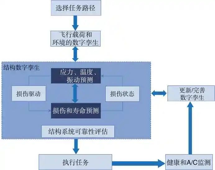 为了实现基于条件的维护策略和更可靠的结构完整性评估,美国空军研究实验室(AFRL)推出了飞机机体数字孪生(ADT)计划,通过最新的概率分析方法来生成载荷谱,构建子模型,执行校准、传播和更新不确定性,预测机体疲劳损伤扩展,做出维护决策等。